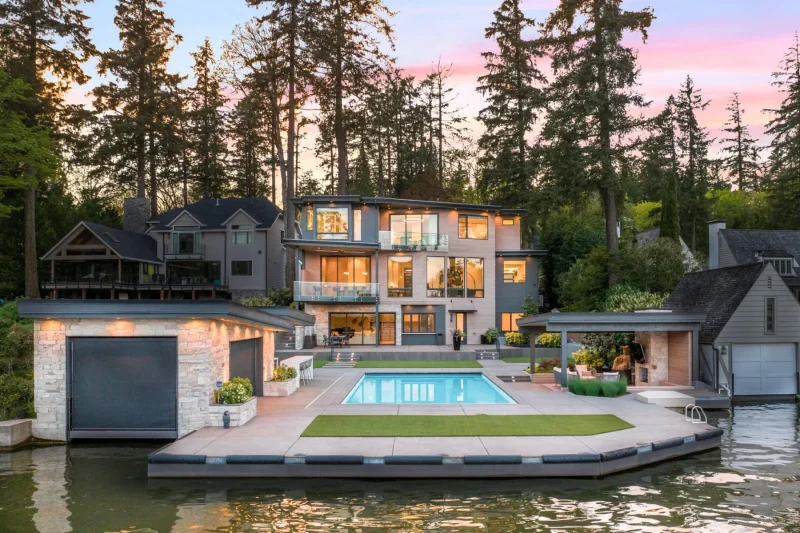 Waterfront estates in Lake Oswego command premium prices, with some luxury properties listed at $12 million or more. These homes typically feature multiple levels leading down to the water and expansive outdoor spaces.